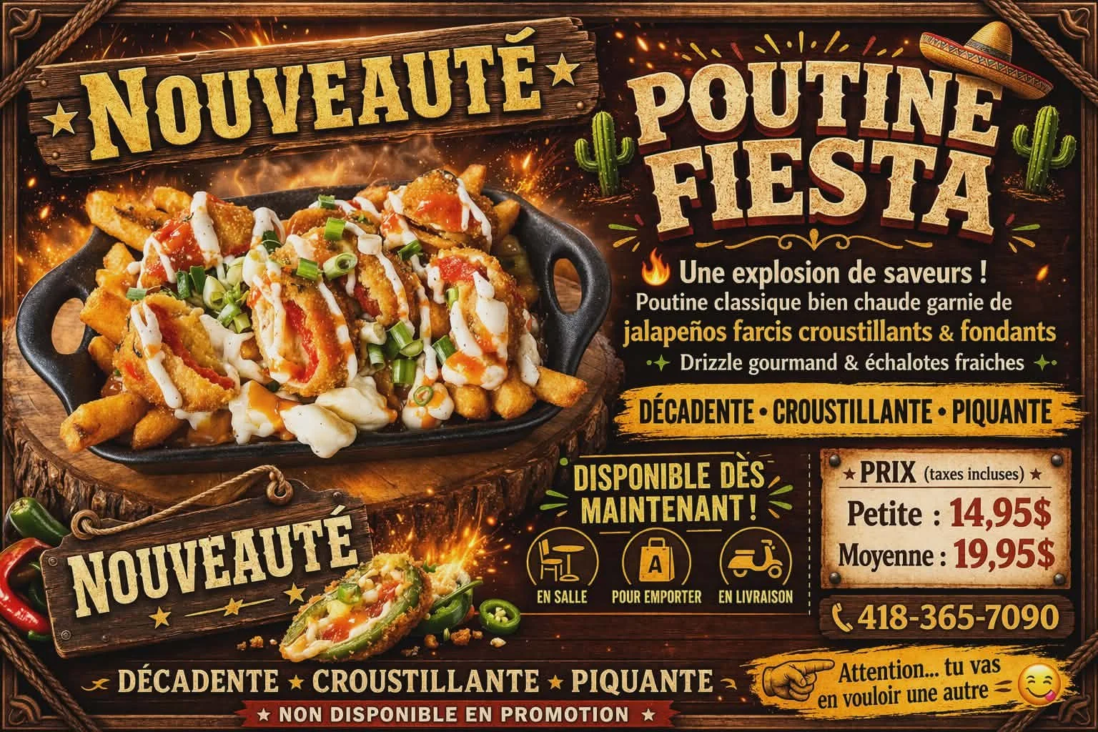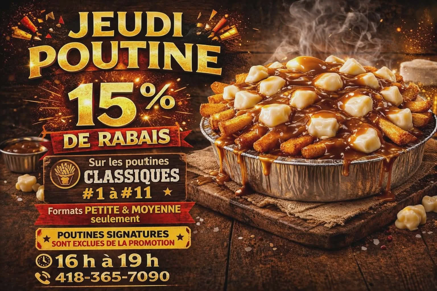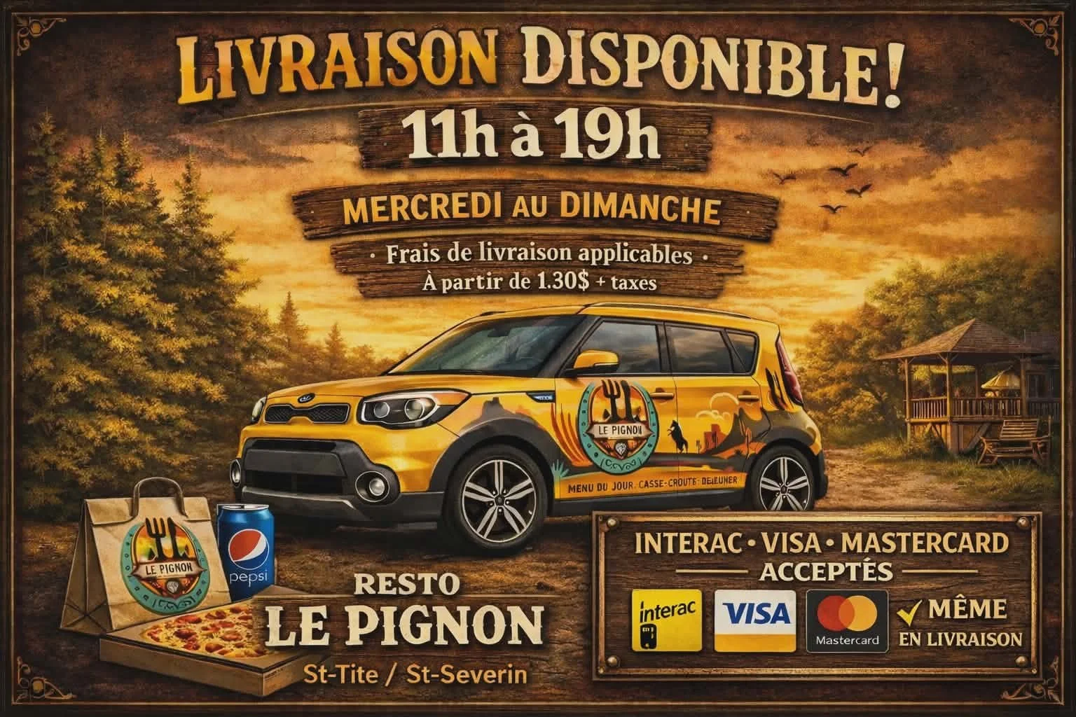 GALERIE PHOTOS CONTACTEZ NOUS MENU Poutines Sous-marins Burgers et sandwichs Poulet Déjeuners Entrées et desserts Casse-croûte Assiettes Pizza Heures d’ouvertureDu mercredi au dimancheDe 11 h 00 à 19 h 00LivraisonDu mercredi au diMANCHEDe 11 h 00 à 19h00 Contactez-nous Téléphone(418) 365-7090 Lieu41 boul. Saint-JosephSaint-Tite, Québec