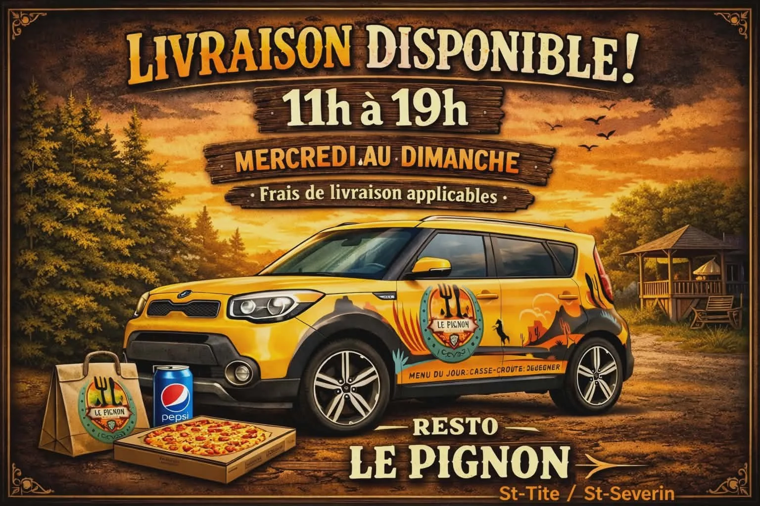 GALERIE PHOTOS CONTACTEZ NOUS MENU Poutines Sous-marins Burgers et sandwichs Poulet Déjeuners Entrées et desserts Casse-croûte Assiettes Pizza Heures d’ouvertureDu mercredi au dimancheDe 11 h 00 à 19 h 00LivraisonDu mercredi au vendrediDe 11 h 00 à 13h30 de 16h30 à 19h00Samedi et dimancheDe 16 h 30 à 19 h 00 Contactez-nous Téléphone(418) 365-7090 Lieu41 boul. Saint-JosephSaint-Tite, Québec